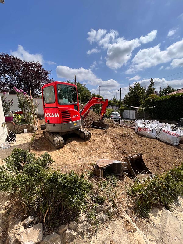Aménagement d’un jardin en pente en gazon synthétique SUPREME 40 en clé en main sur sol meuble sur deux niveaux
