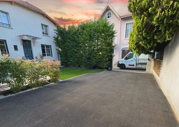 Le recours au gazon synthétique pour les allées carrossables et places de parking est beaucoup plus économique que l’enrobé, avec l’avantage de maintenir un bon drainage des sols. Ces dernières années, cette utilisation de gazon artificiel sablé se développe de plus en plus et a démontré sa bonne résistance au passage régulier de véhicules.