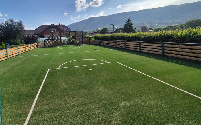 Pour un usage sportif, plus intensif que sur une surface en gazon paysager, les gazons artificiels sont sablés et doivent répondent à des critères techniques de durabilité dans le temps, de facilité d’entretien et de confort de jeu.